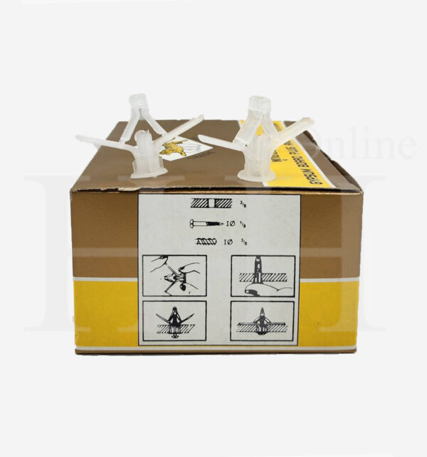 - สำหรับใช้ยึดอุปกรณ์กับแผ่นยิปซั่ม หรือไม้อัด เจาะรูขนาด 3/4″ (9mm) พับปีกพุ๊กแล้วสอดเข้ารูที่เจาะไว้ ขันสกรูเบอร์ 6 เพื่อยึดอุปกรณ์ (ห้ามใช้ค้อนตอก)
